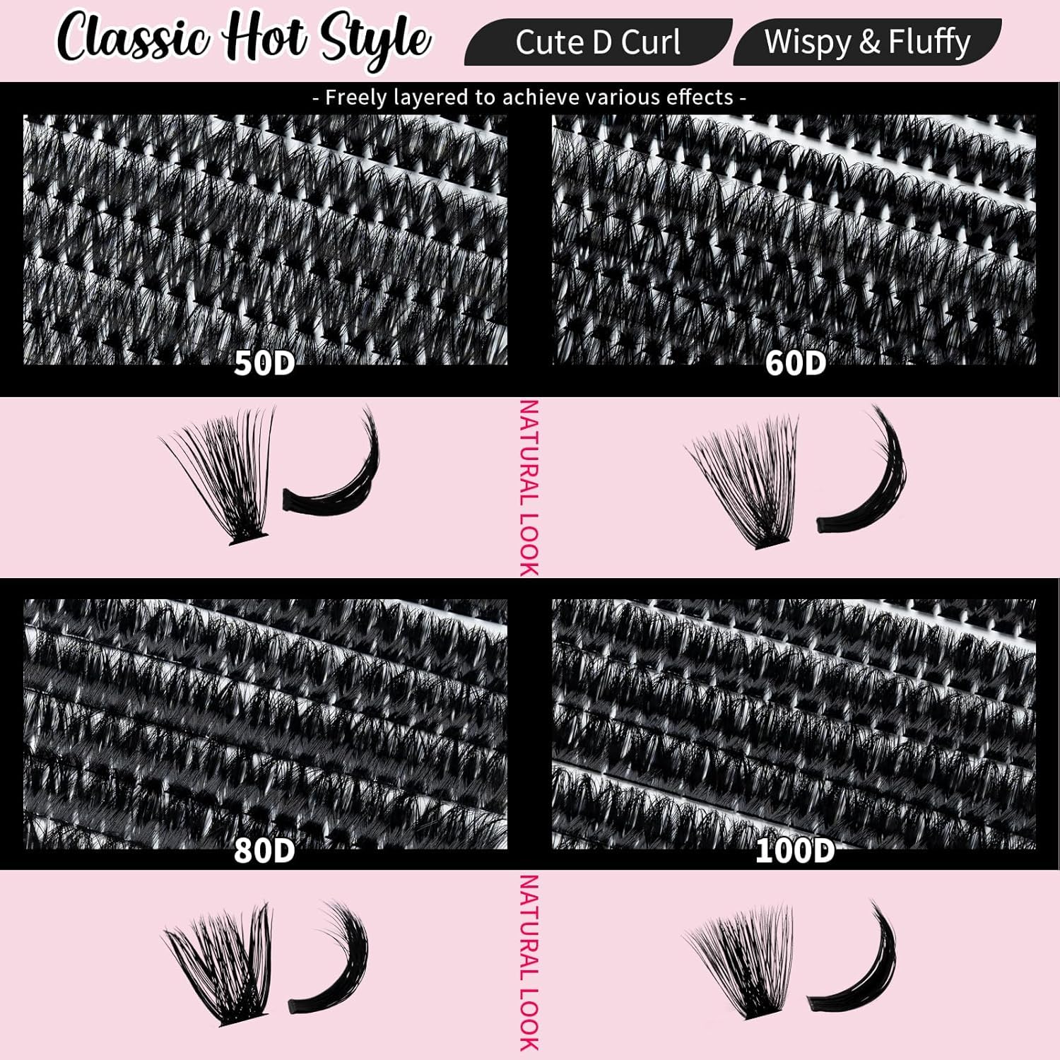 ✔️ 640 PCS D Curl Cluster Lashes – soft, lightweight & reusable, made from premium PBT fibers