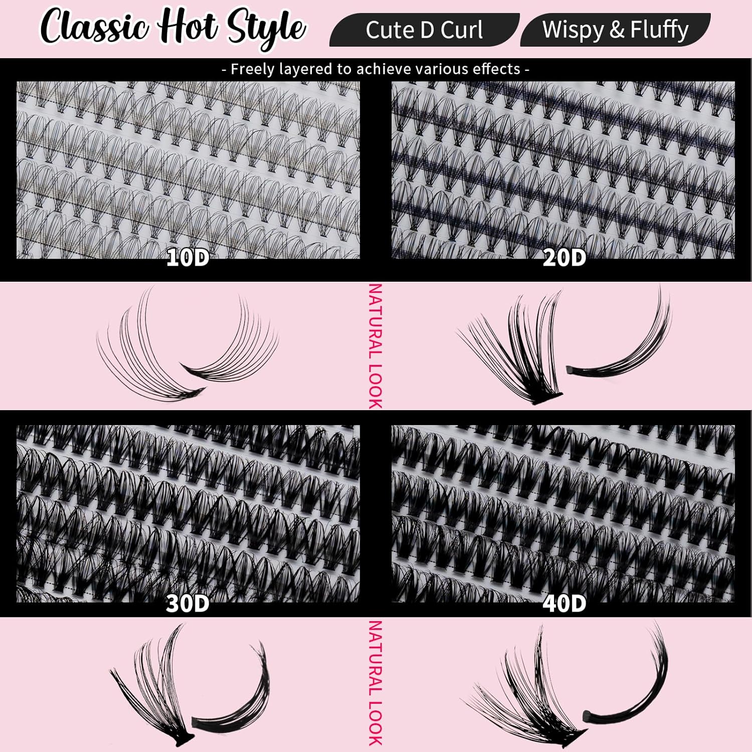 - DIY Lash Looks Now: Customizable to fit any eye shape, you can use different lengths of eyelash clusters to create more style possibilities - cat-eye, fan-eye, doll-eye, dramatic-eye, natural, fluffy, and more. Achieving the perfect extension look with our diy lash extension kit.