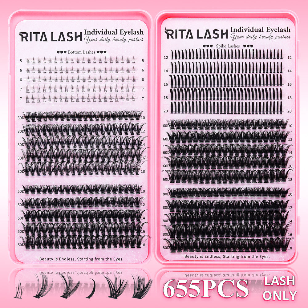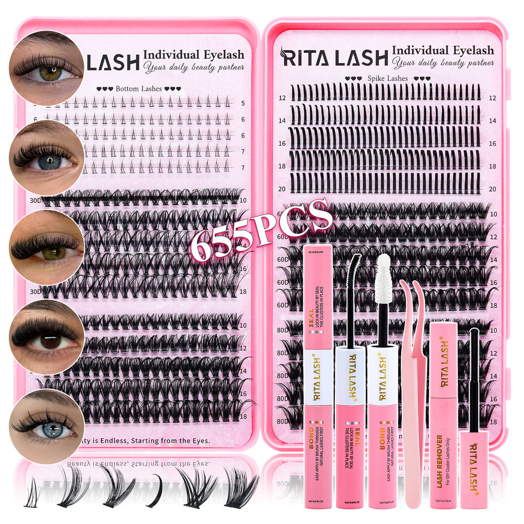 💖RITALASH 655PCS DIY Lash Extension Kit – Bottom, Spike, 60D & 80D Cluster Lashes
