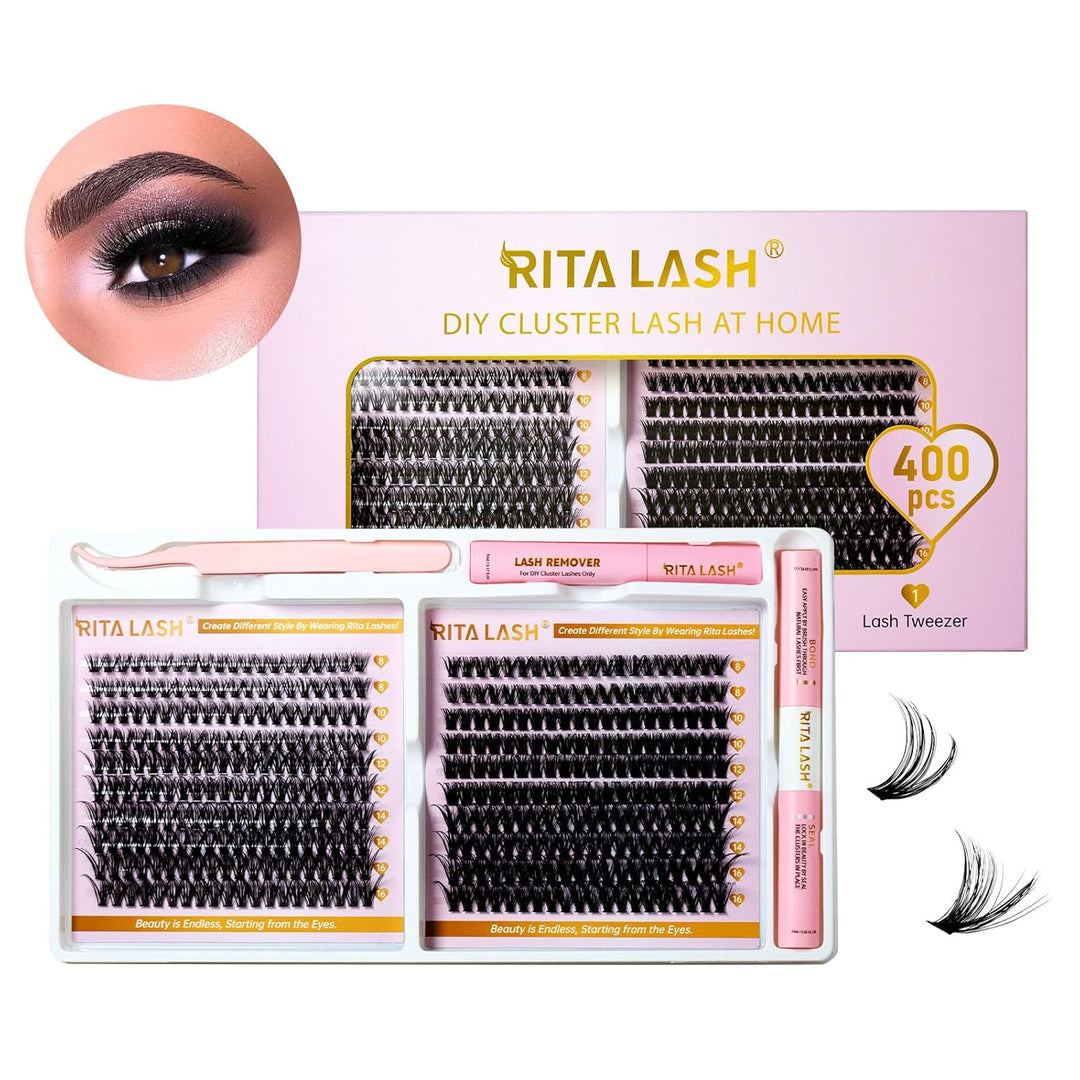 💖RITALASH 400PCS D Curl Individual Eyelash Clusters Kit – DIY with Bond, Seal & Tweezers