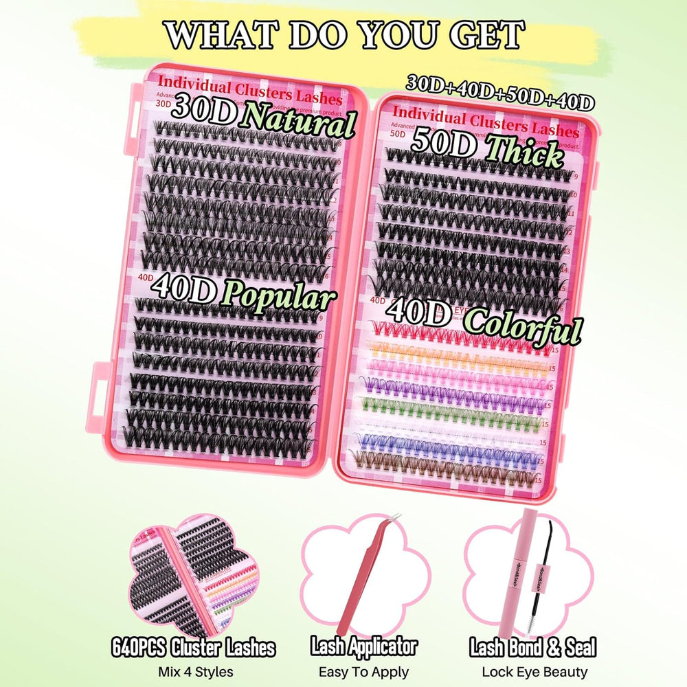 💖RITALASH DIY Colored Lash Extension Kit – 640PCS 30D + 40D + 50D + 40D Cluster Lashes