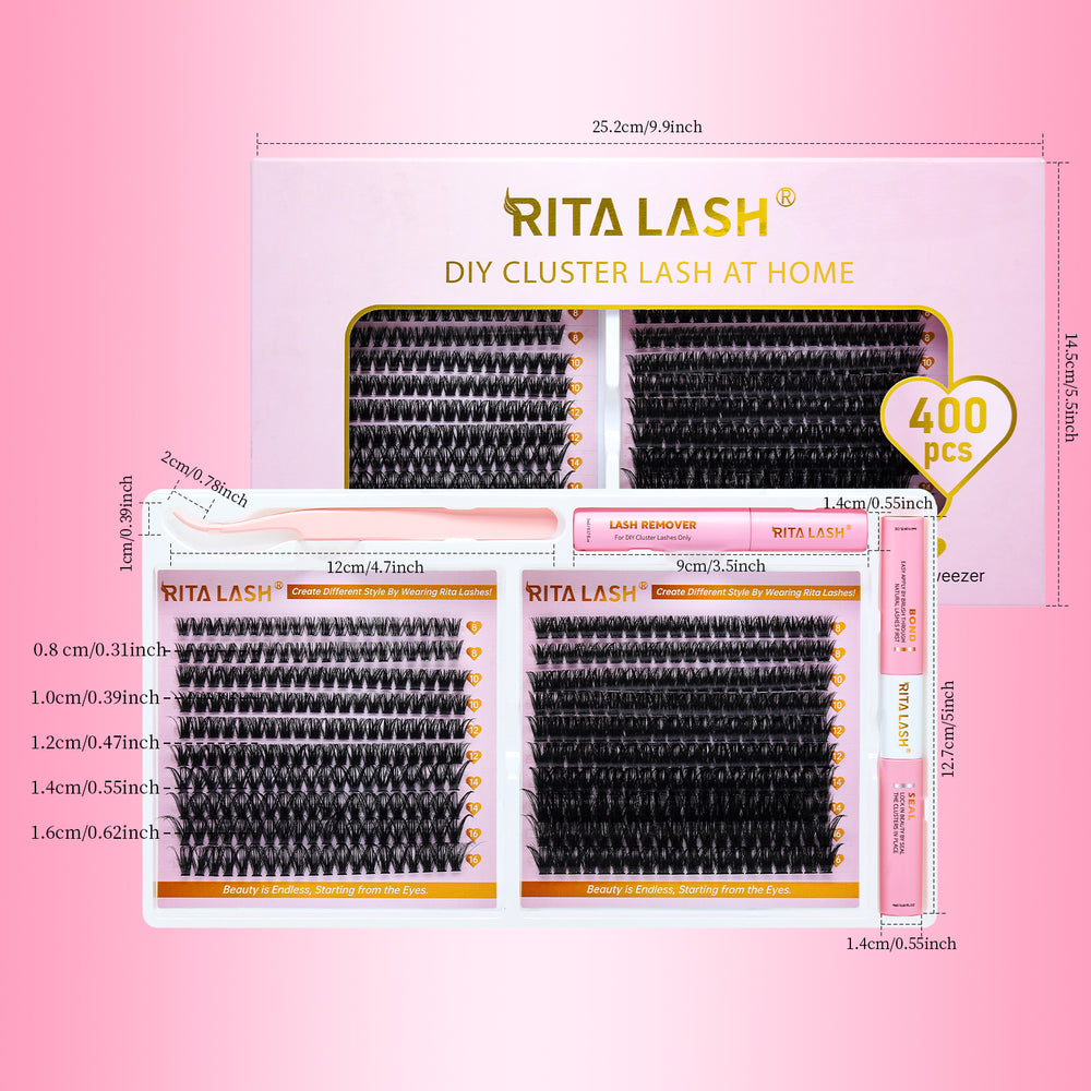 💖RITALASH 400PCS DIY Lash Extension Kit – 40D + 60D Cluster Lashes