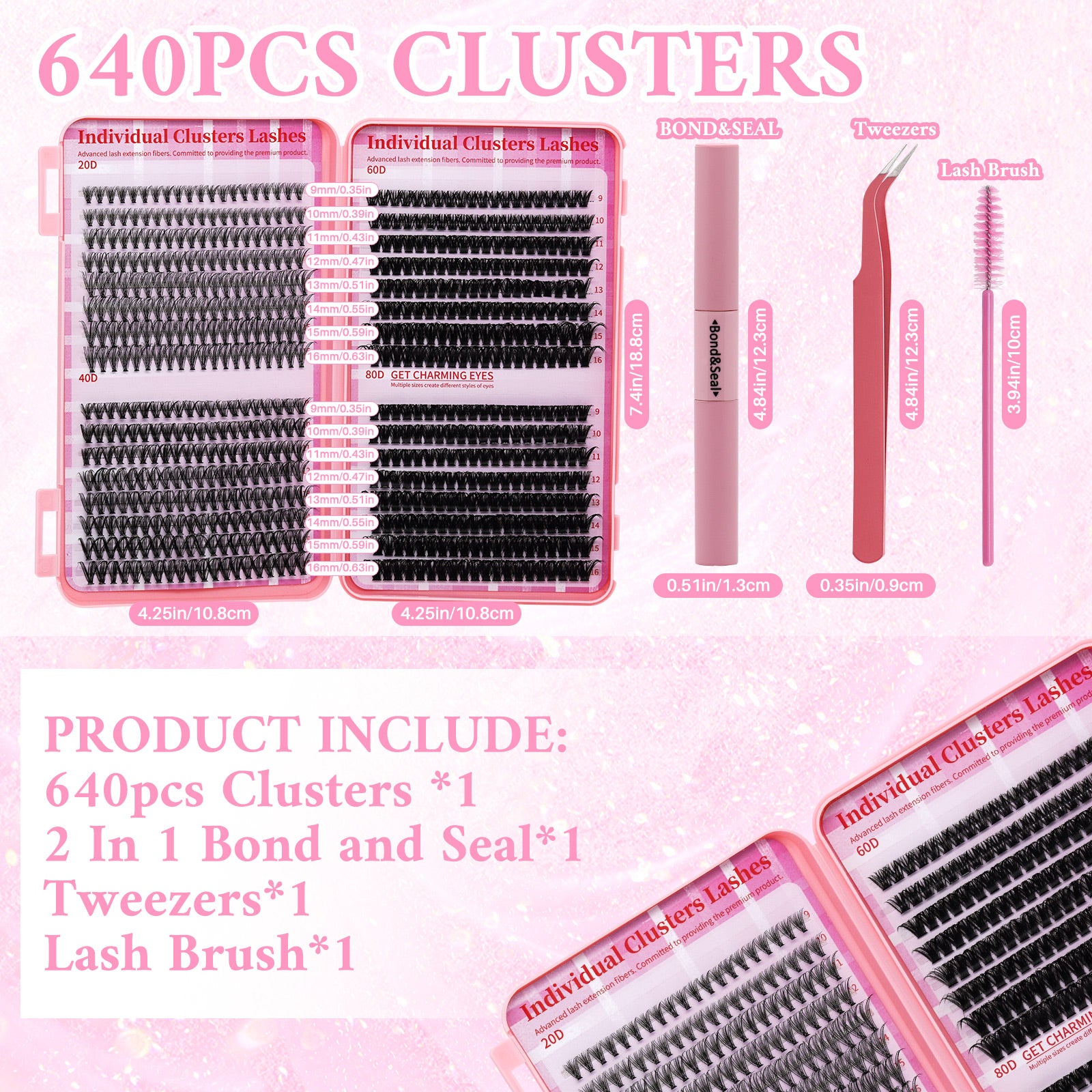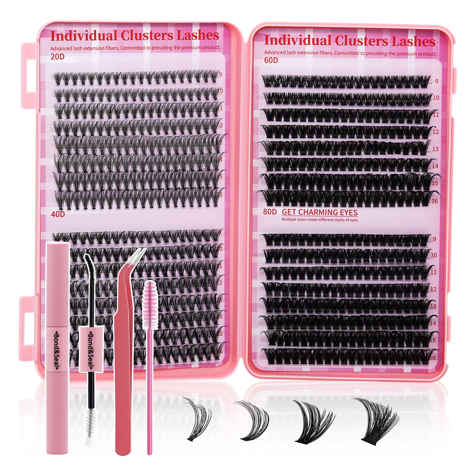 ✔️ Mixed Cluster Lashes (20D + 40D + 60D + 80D) – versatile options for natural to full-glam looks
