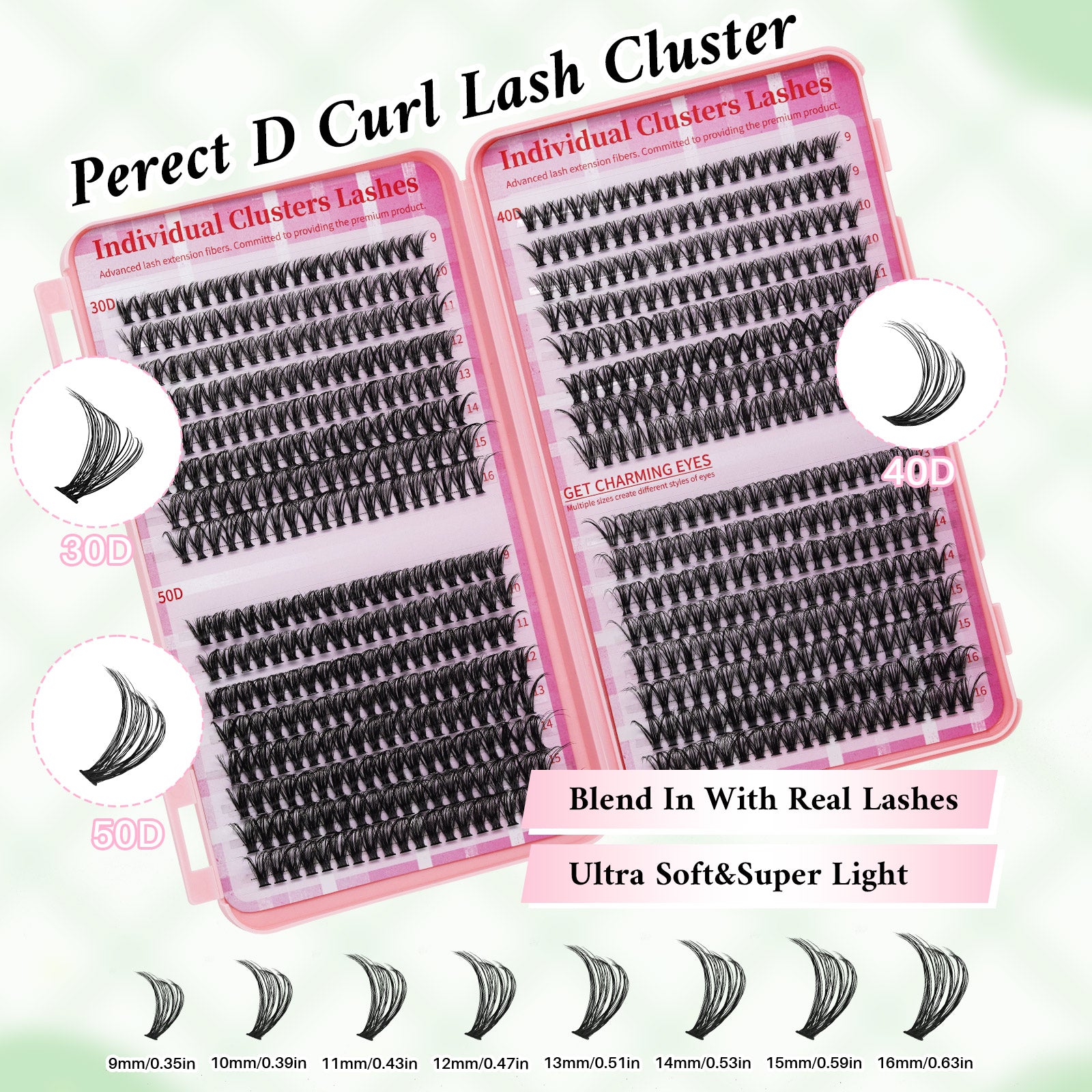 ✨ What’s Inside: ✔️ 640 D Curl Lash Clusters – mix of 30D, 40D & 50D for custom volume effects ✔️ Mixed Lengths – long and full clusters to design your perfect lash look ✔️ Bond & Seal Duo – strong, long-lasting hold for up to 14 days ✔️ Lash Tweezer & Brush – easy application and styling for flawless results ✔️ DIY-Friendly Kit – perfect for beginners & lash lovers, no salon required