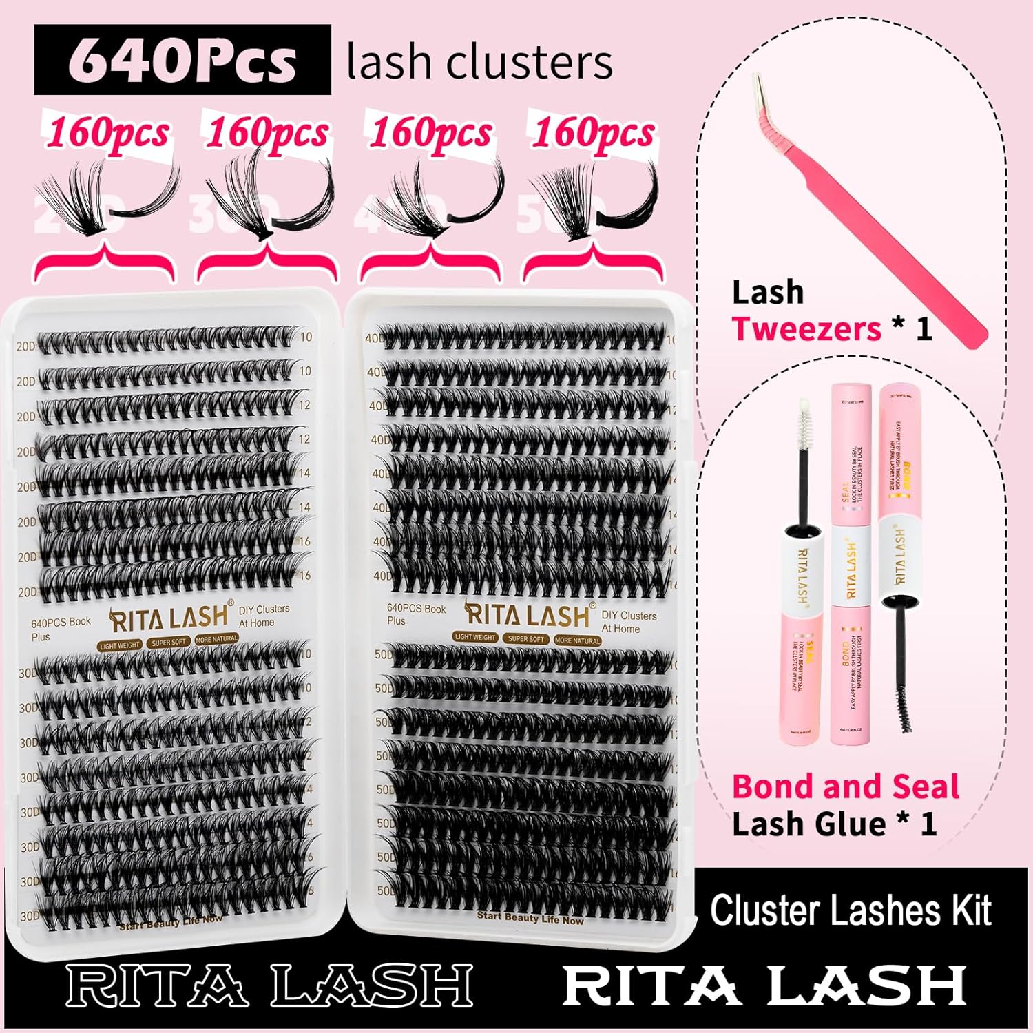 - All-in-One Eyelash Book: Lashes extension kit provides 640 PCS wispy lash clusters and has an array of lengths and styles, similar to salon lash extensions. Eyelash case*1, New lash bond and seal *1, lash tweezers*1, Everything is prepared for you. Eyelash Extension Kit is just as lush as expensive salon lash extensions at a fraction of the price. Save time and budget to go to the lash extension salon.