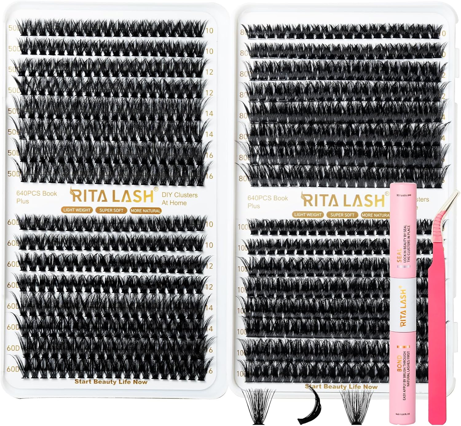 1. All-in-One Eyelash Book: Lashes extension kit provides 640 PCS wispy lash clusters and has an array of lengths and styles, similar to salon lash extensions. Eyelash case*1, New lash bond and seal *1,  lash tweezers*1,  Everything is prepared for you. Eyelash Extension Kit is just as lush as expensive salon lash extensions at a fraction of the price. Save time and budget to go to the lash extension salon.