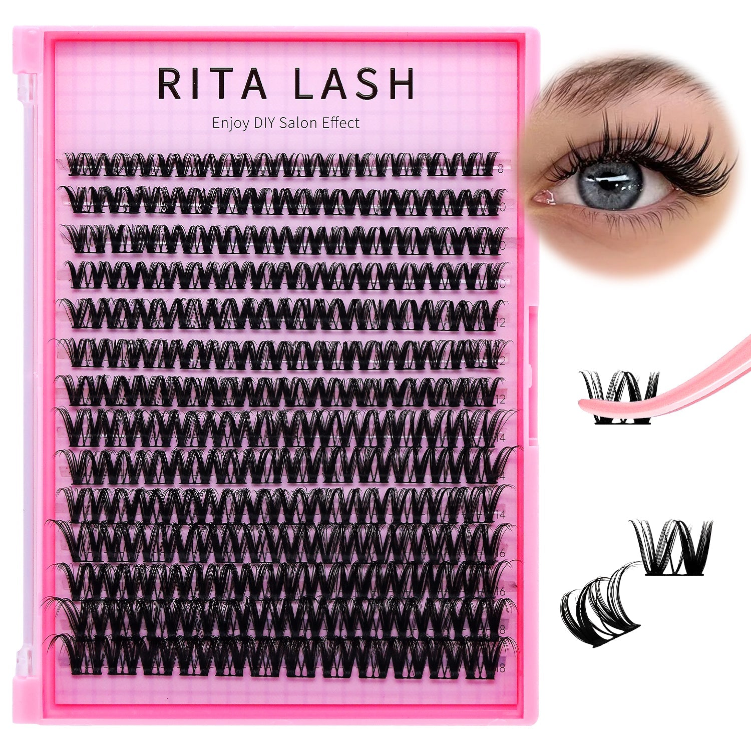 Flora Lash Clusters Hybrid Volume Wispy Cluster Lashes WideSpan DIY Eyelash Extension Cat Eye Lashes Individual Eyelash Clusters Invisible Lash Band(Flora,8-18mm)
