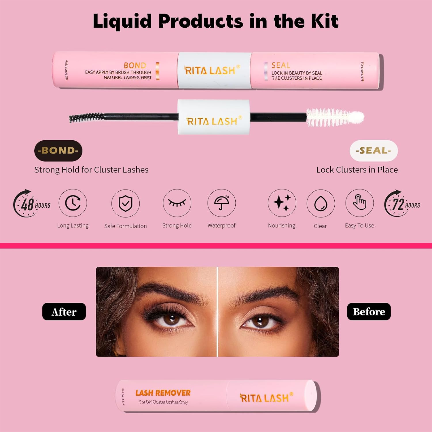 【Mild Formula & No Irritation】:The bond & seal and lash remover use mild formula,and have a excellent waterproof and effect,gentle and not irritating,does not harm your skin and your eyes.With RITALASH bond and seal lash glue,your beautiful individual eyelash clusters can keep long-lasting for 72h+.