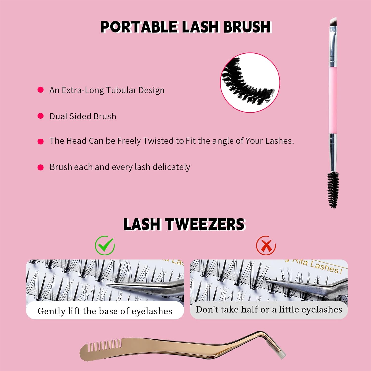 【Beginner-friendly Cluster Lash Kit 】RITALASH Lashes extension kit provides 640 PCS wispy lash clusters and has an array of lengths and styles, similar to salon lash extensions. Eyelash case*1, New lash bond and seal *1, adhesive remover*1, lash tweezers*1, Spoolie Mascara Wand. Everything is prepared for you. Eyelash Extension Kit is just as lush as expensive salon lash extensions at a fraction of the price. Save time and budget to go to the lash extension salon.