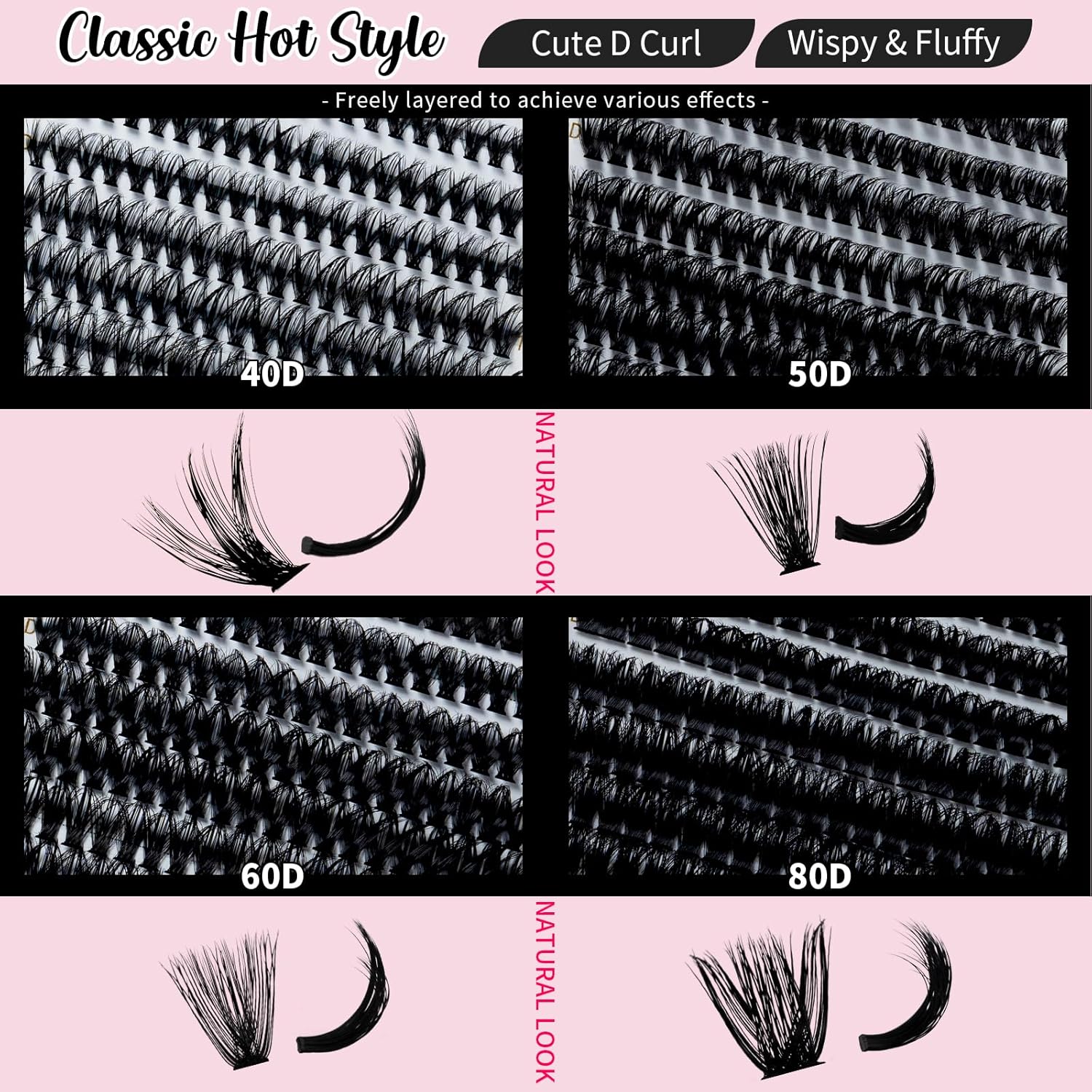 - DIY Lash Looks Now: Customizable to fit any eye shape, you can use different lengths of eyelash clusters to create more style possibilities - cat-eye, fan-eye, doll-eye, dramatic-eye, natural, fluffy, and more. Achieving the perfect extension look with our diy lash extension kit.
